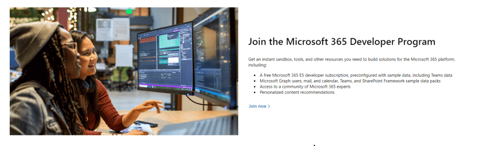 Microsoft 365 开发者版链接在此:https://developer.microsoft.com/en-us/office